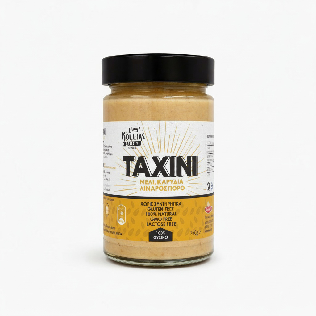 Το Ταχίνι με μέλι καρύδια λιναρόσπορο της Kollias Family συνδυάζει πλούσια γεύση και φυσικά συστατικά, δημιουργώντας ένα απολαυστικό και ισορροπημένο άλειμμα. Η φυσική γλυκύτητα του μελιού, η ένταση των καρυδιών και η προσθήκη λιναρόσπορου δένουν αρμονικά με το ταχίνι, προσφέροντας γεμάτη υφή και ευχάριστη γεύση.